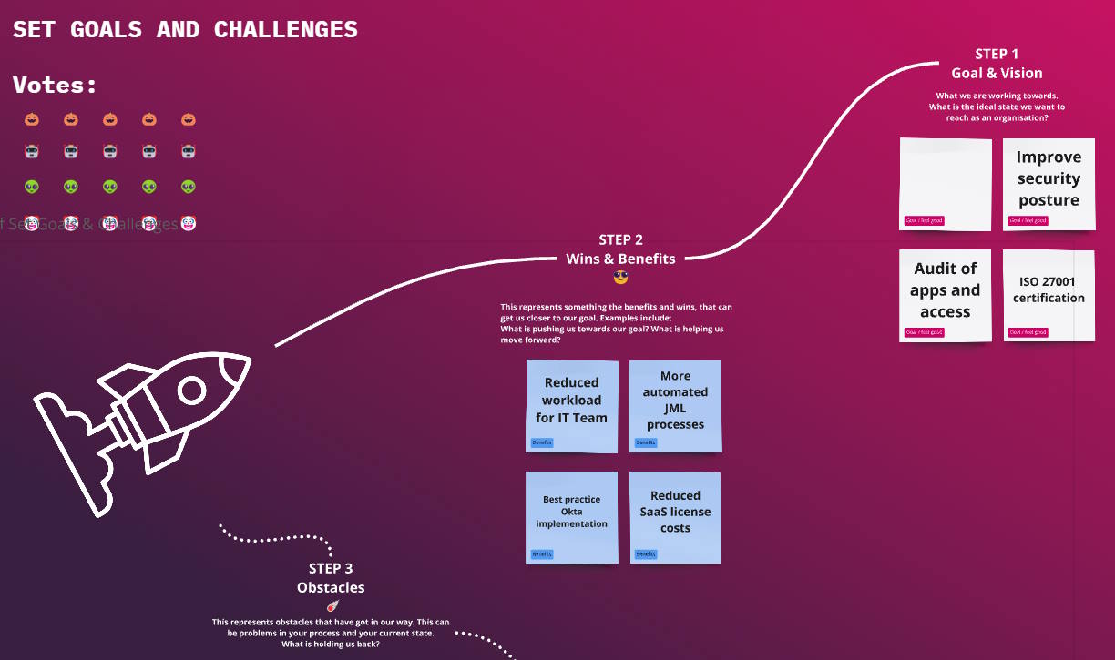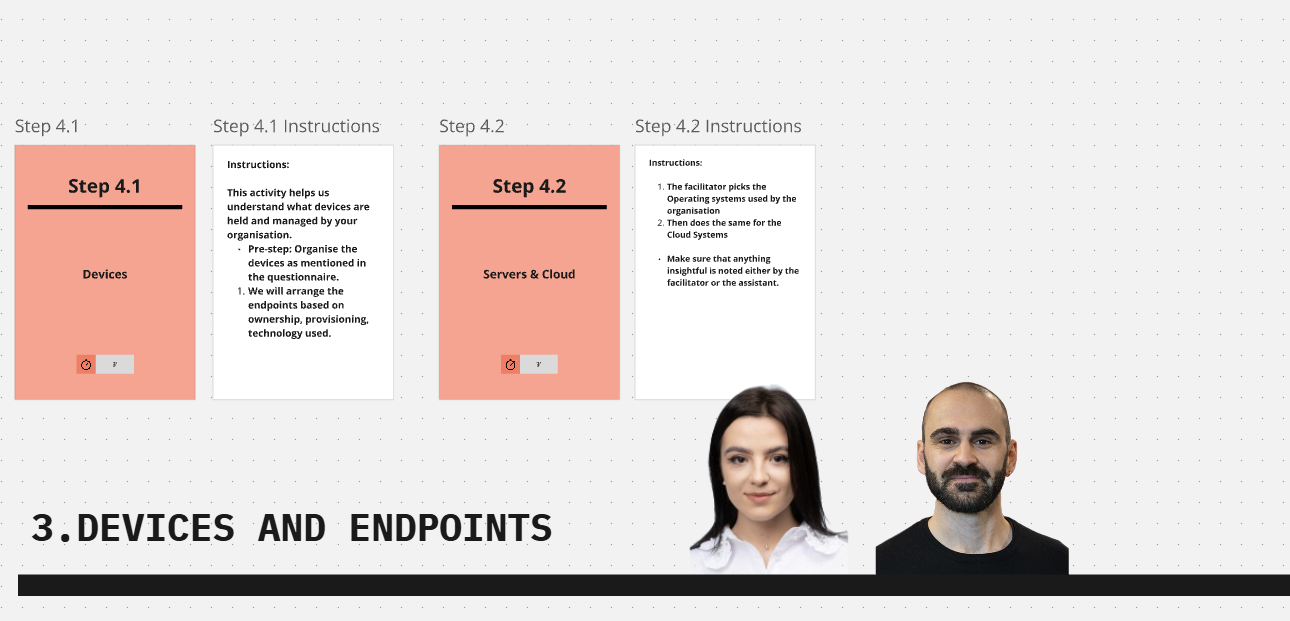 Our Discovery Workshop is a highly interactive session designed to uncover your specific security needs and objectives. Inspired by techniques from UX, Product Management, and Facilitation, our approach ensures a thorough and engaging experience. Utilizing tools like Miro, we focus on visualizing your processes and desired outcomes, aligning them with your business goals. This collaborative environment allows us to gain deep insights into your organization, ensuring that our subsequent analysis and recommendations are precisely tailored to your unique requirements.