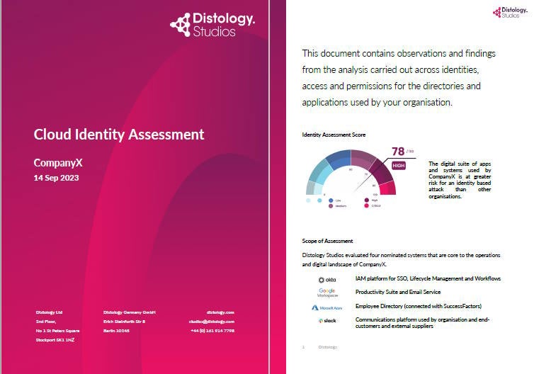 This is an Identity Assessment with a difference. Taking a business strategy approach, it starts with Discovery Workshops to understand your needs, followed by in-depth System Analysis to identify current vulnerabilities, and culminating in a detailed Findings and Recommendations Report with actionable steps to enhance your security posture.